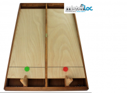 Chaque joueur lance ses palets en bois et tente d’être le premier à atteindre la ligne d’arrivée, case après case, sans sortir du parcours.